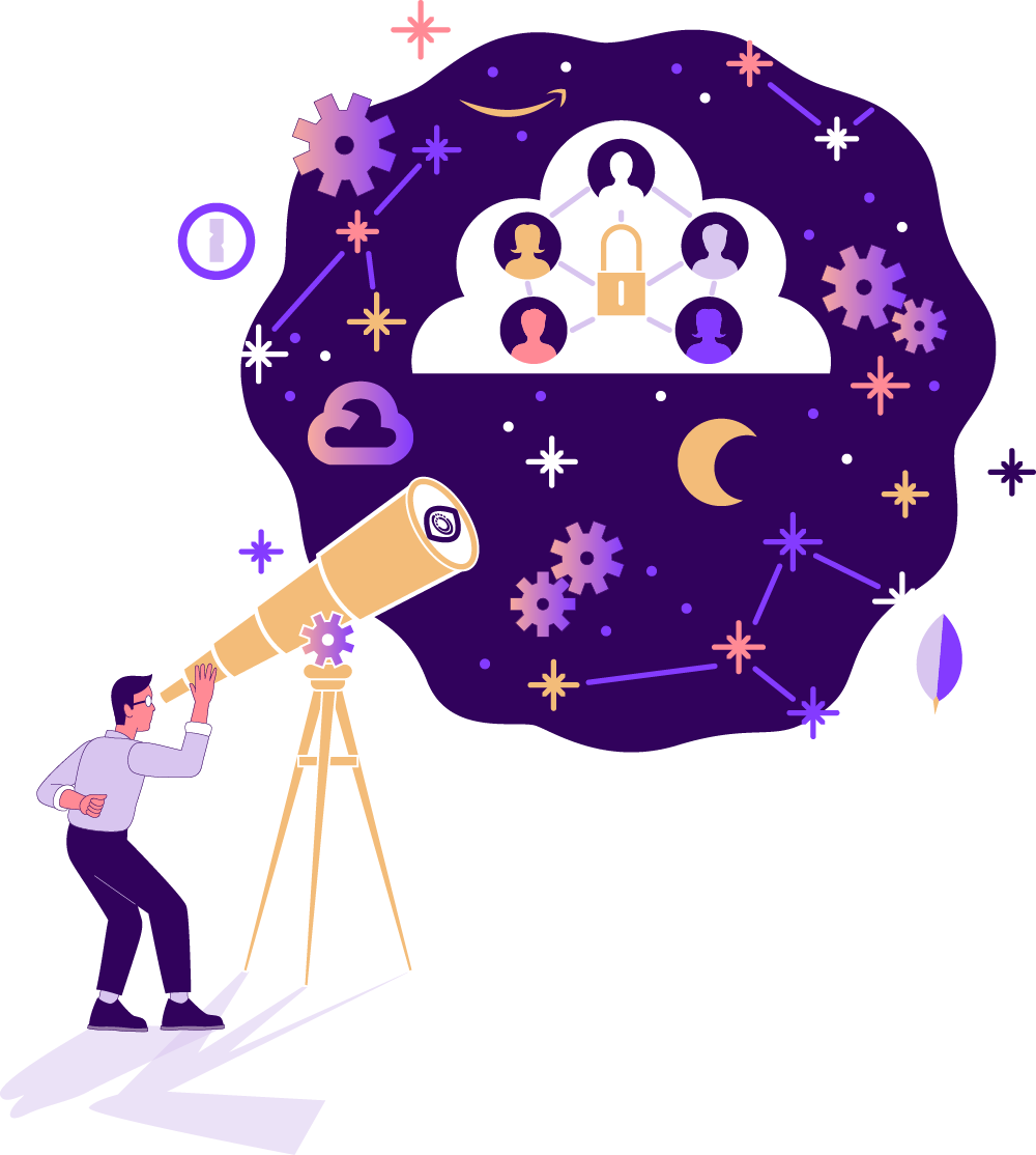 equating the connectivity of constellations to the connectivity offered by cloud systems access. recognizable cloud system logos were added amongst the constellations to further enforce the connection.